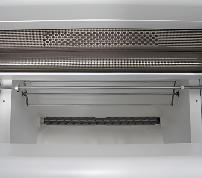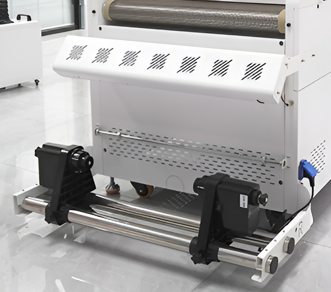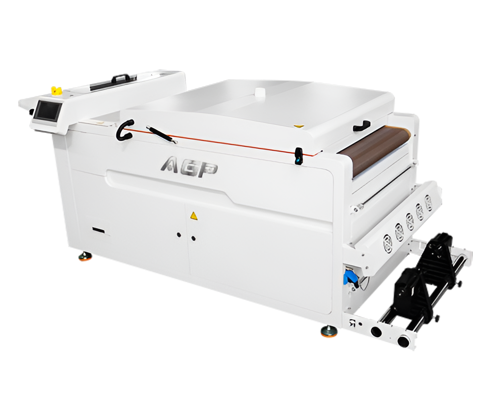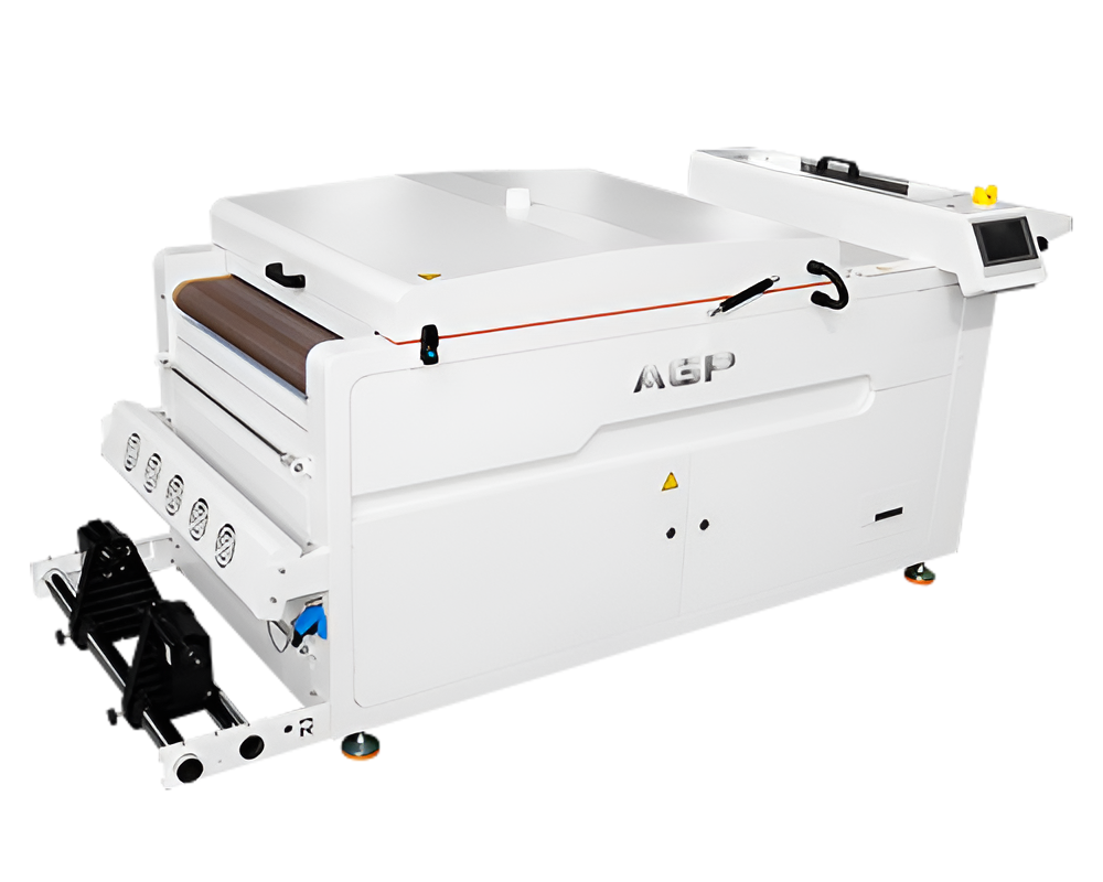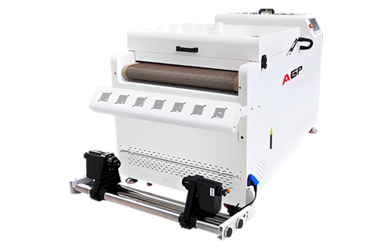 Po wydrukowaniu wzoru na folii DTF urządzenie automatycznie nanosi i równomiernie rozprowadza proszek hot-melt, a następnie podgrzewa i suszy nadruk, przygotowując go do termotransferu. Dzięki pełnej automatyzacji proces staje się szybszy, dokładniejszy i bardziej opłacalny, eliminując potrzebę ręcznego potrząsania i aplikowania proszku.