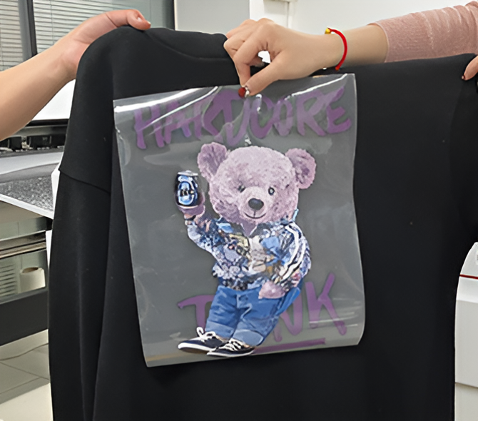 Proces aplikacji jest prosty – po wydrukowaniu i utwardzeniu wzoru folia zostaje umieszczona na tkaninie, a następnie poddana działaniu prasy termicznej. Po zdjęciu folii uzyskujemy trwały, elastyczny i odporny na pranie nadruk o intensywnych kolorach i wysokiej szczegółowości.